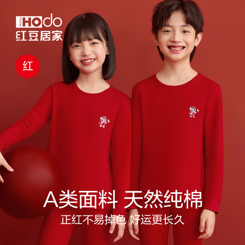 本命年大红秋衣女童马年保暖套装