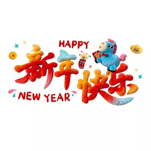 【裸眼5D】毛绒视觉质感可爱小马静电贴橱窗玻璃装饰过年窗花
