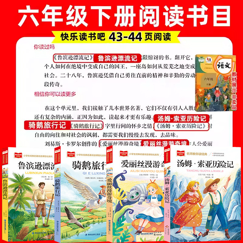 17《 HU287 HjiyUWeyde5《 https://m.tb.cn/h.7PTqUBi 六年级下册快乐读书吧课外必读书籍 6下鲁滨逊漂流记汤姆索亚历险记爱丽丝漫游奇境梦游仙境尼尔斯骑鹅旅行记原著正版经典推荐书目