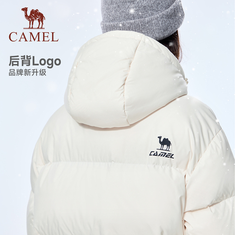 骆驼运动中长款羽绒服女款冬季黑色加厚北影连帽羽绒外套男