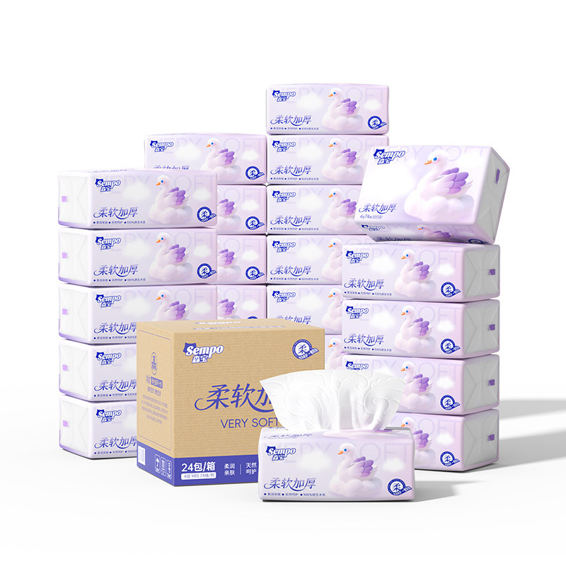 森宝抽纸紫鹅4层加厚整箱实惠餐巾纸卫生纸家用纸巾24包面巾纸