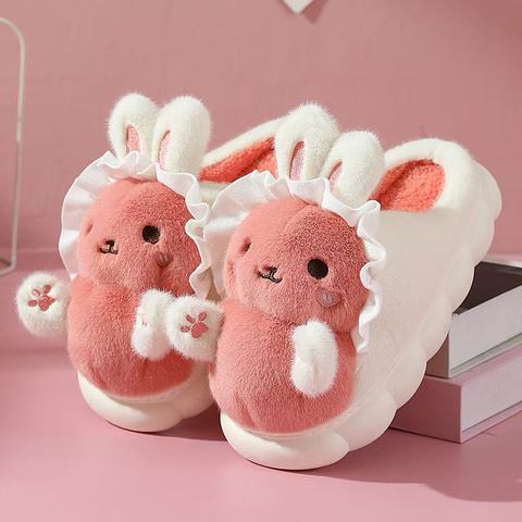 99《 CZ007 xFziUdySO0o《 https://m.tb.cn/h.79g7roX 新款可爱抱抱兔女生冬季拖鞋高颜值洋气公主风超厚防冻居家外穿