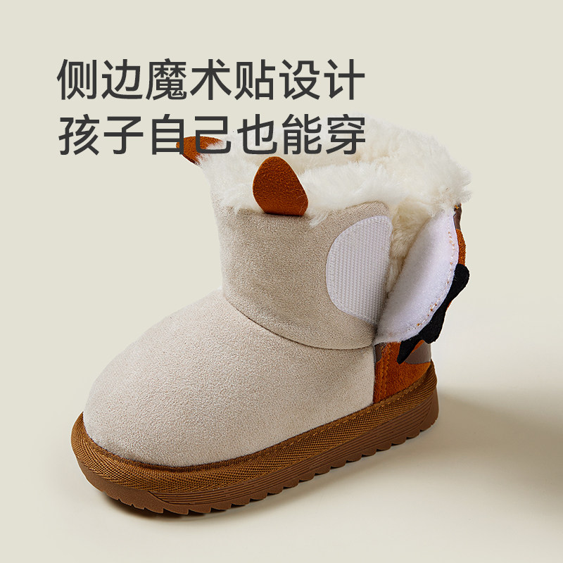 冬季加绒保暖防滑儿童雪地靴!羊津绒帮面,高帮毛口,暖到脚踝,保暖透气不闷脚!侧边魔术贴设计,孩子自己也能穿!
