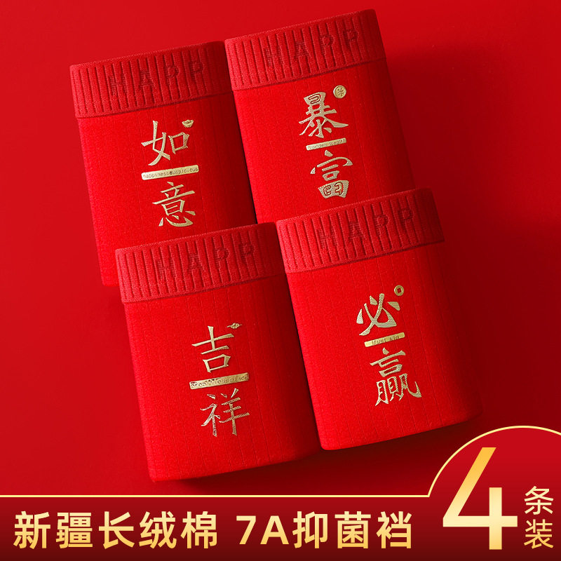 男士内裤男生平角红色纯棉本命年四角中腰短裤透气大码裤衩
