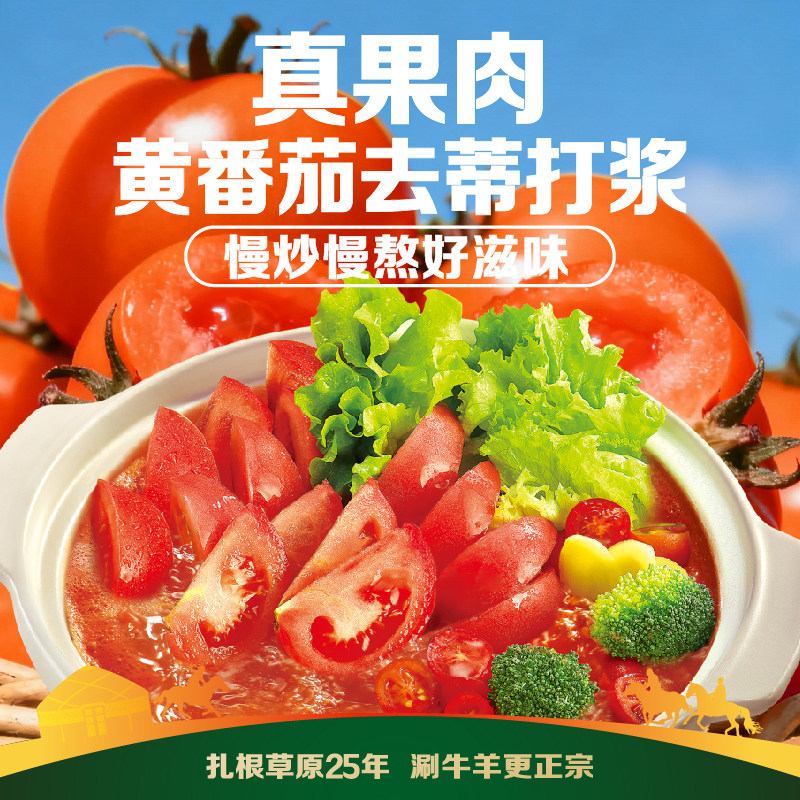 1月份新日期【草原红太阳官方旗舰店】23年老牌!蕞好吃的涮牛羊火锅搭子!甄选五原黄番茄,超值60g*5袋,关东煮酸汤肥牛炒菜调味料!