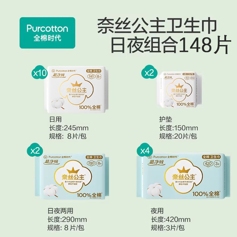 【时限量加码减95.75元,16元券,下拉详情页进超补领59-7元红包,淘金币1.99元,到手79.06元,88vip到手74.66元】超薄升级版超净吸基础组合,全棉全表层系列,柔软不刺激,自在舒适好呼吸,还有全新全棉拒水科技,告别侧漏~