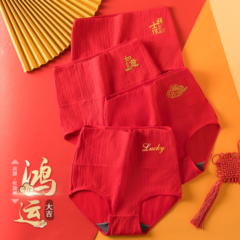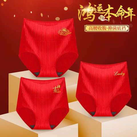 本命年结婚季新年喜庆大红色女士内裤女大码抗菌纯棉裆红色三角裤