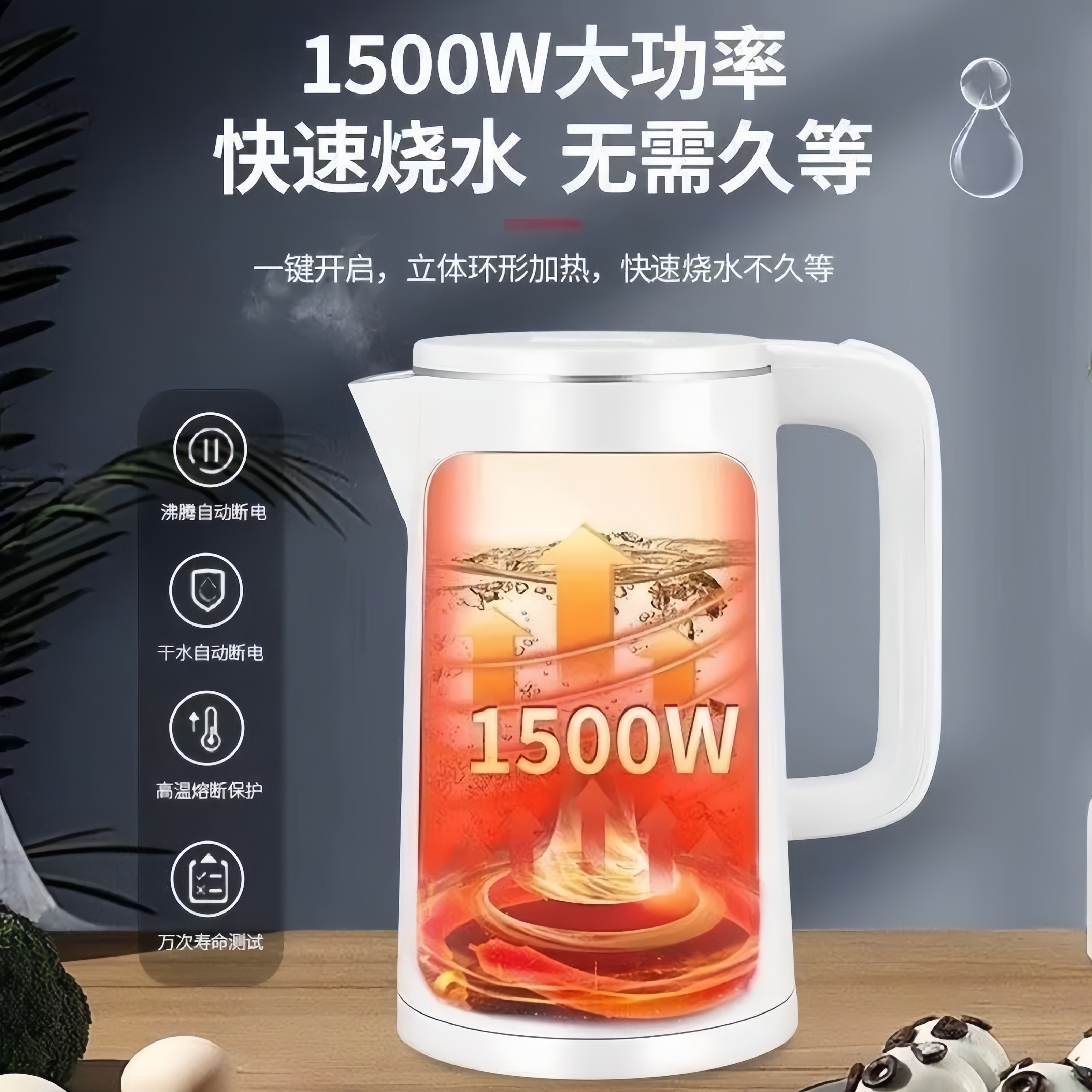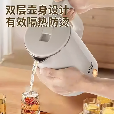 万利达!2.3升自动断电双层电热水壶,双层设计+自动断电!!安全可靠!保温效果好!!关键操作简单方便!!