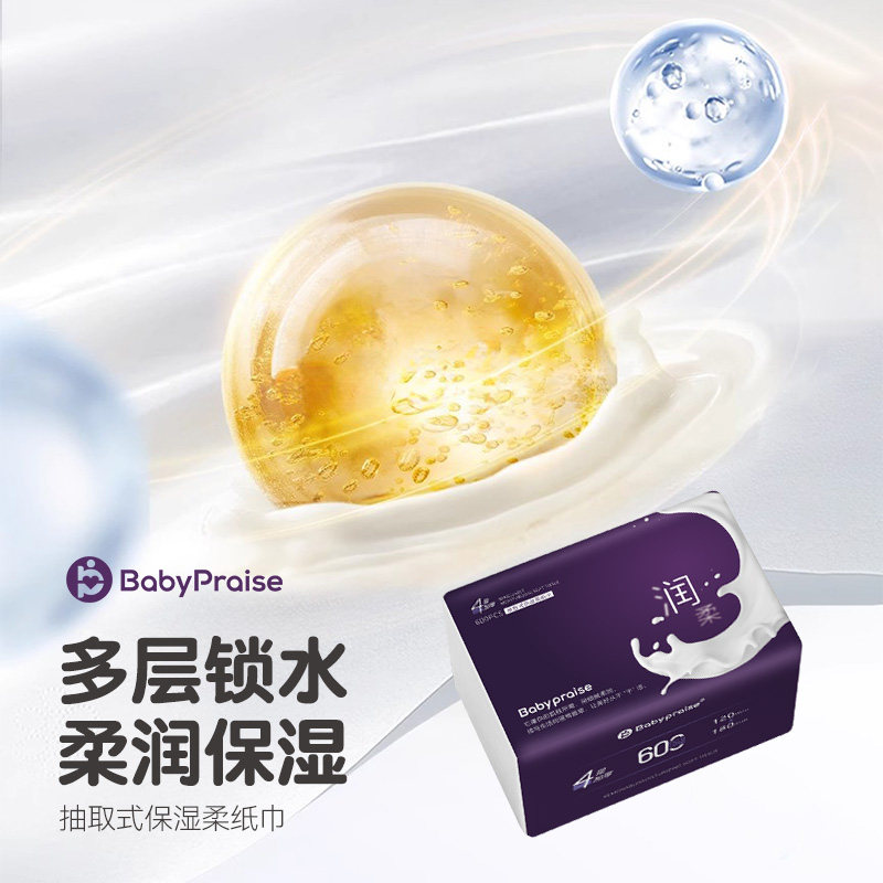 39《 MF168 iUghUdxC3h5《 https://m.tb.cn/h.79HbxL8 BABY PRAISE宝宝赞保湿乳霜纸柔纸巾4层加厚整箱大包150抽