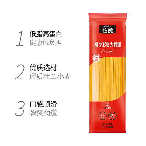 7元淘客券,0.69元淘金币,5元闪购惊喜红包,到手22.21元/4袋,2件装另叠加99-10元品类券,更优惠!公鸡进口意大利面500g*4袋,扁身形意面方便速食,口感劲道有嚼劲,适合日常快手餐!拍2件仅需39.8元,性价比超高,速囤不亏!