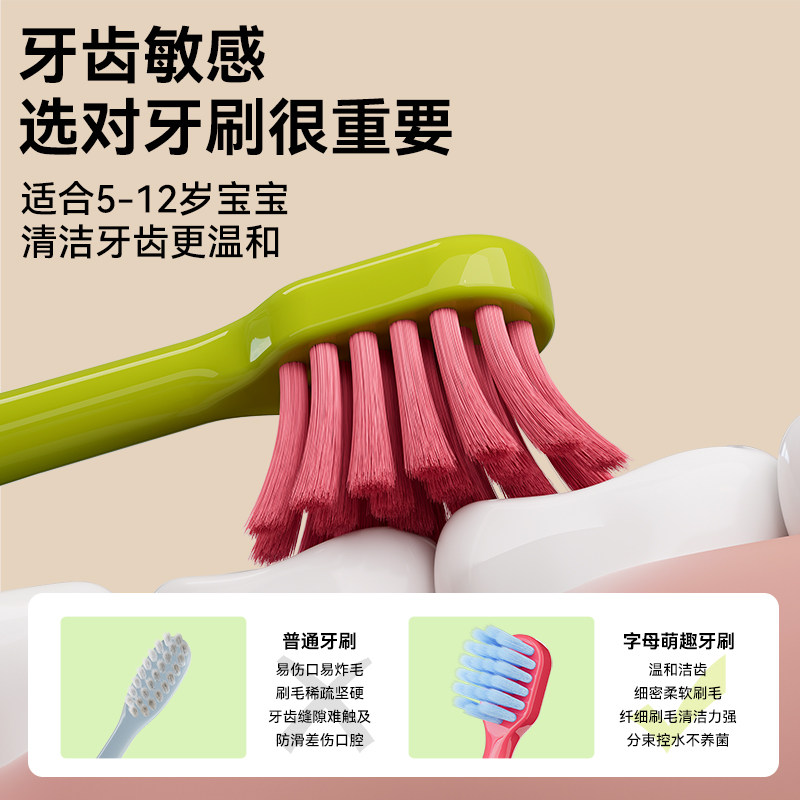 57¥ CZ028 FZ1CUdSciuM¥ https://m.tb.cn/h.7kQsYqN 萌趣字母软毛牙刷5-8-12岁清洁护齿学生宝宝家用10支收纳桶装