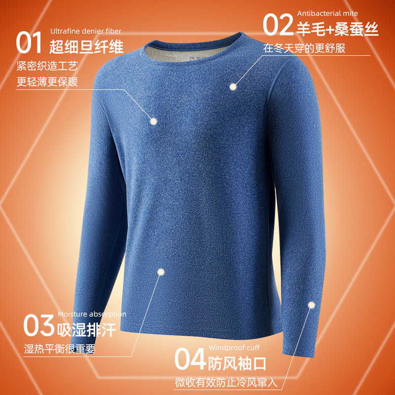 PLOVER德绒保暖内衣男套装,加绒加厚设计,冬季防寒必备!发热打底,保暖效果显著,适合秋冬穿着。性价比超高,保暖又舒适!锁温24小时看的见的热度!可穿到180斤!!羊毛保暖,桑蚕丝养护!啄木鸟!!热芯暖绒~双重保暖!!