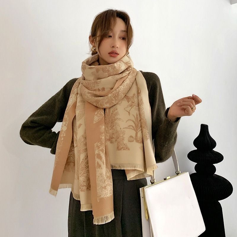2025秋冬季加厚提花,办公室披肩!保暖女花卉长款,仿羊绒围巾围脖女!