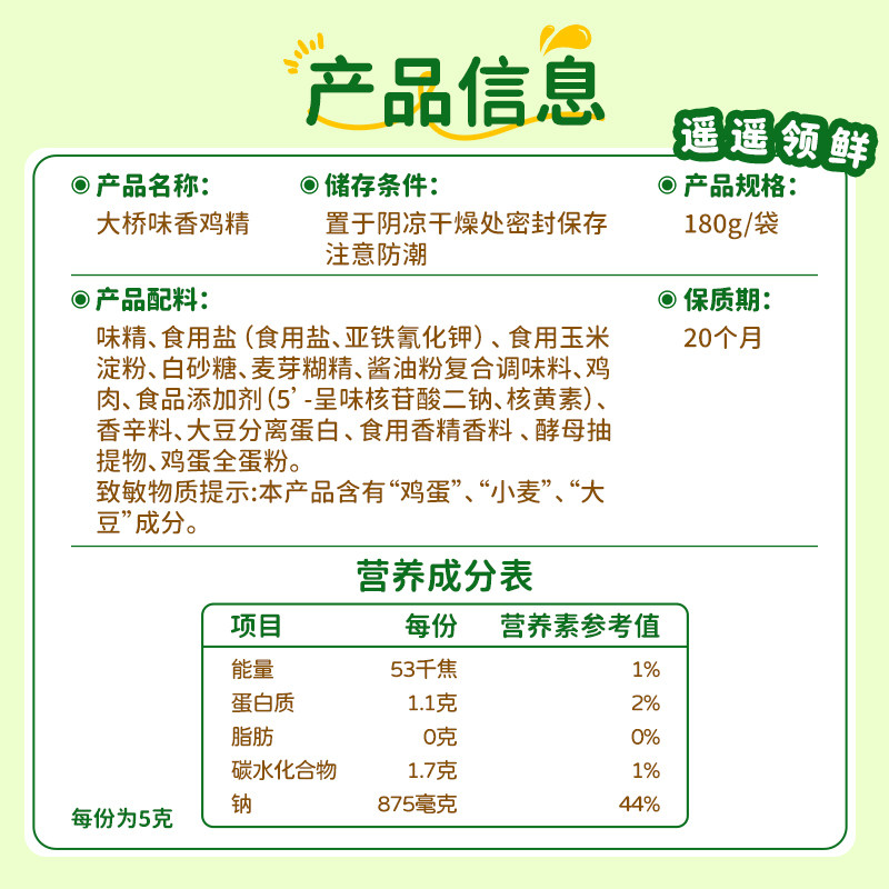 37¥ MF278 2ou8U2gchyw¥ https://m.tb.cn/h.7QXHx92 大桥味香鸡精调味料720g提鲜鸡粉调味味精家用大袋商用官方旗舰店