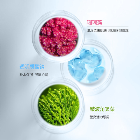 一膜双效莹润眼周,俞现年轻,深海珊瑚臻萃精华,双色复配,双效加乘