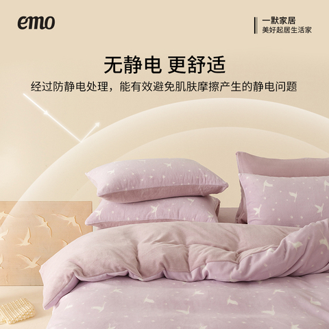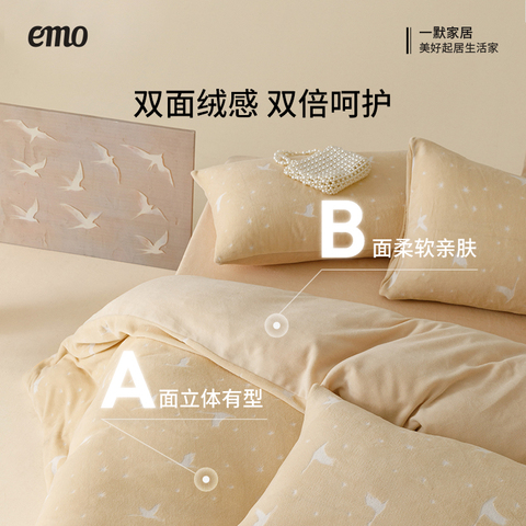 【叠国补99起】,一默牛奶绒四件套飞鸟集珊瑚绒加绒被套床单保暖套件双面绒秋冬季