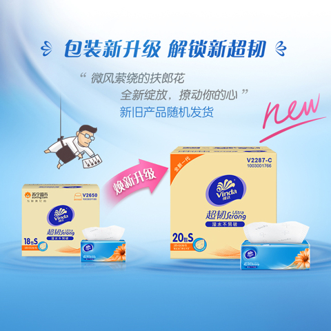 【进直播间享加赠】维达纸巾抽纸超韧整箱面巾纸餐巾卫生纸擦手纸