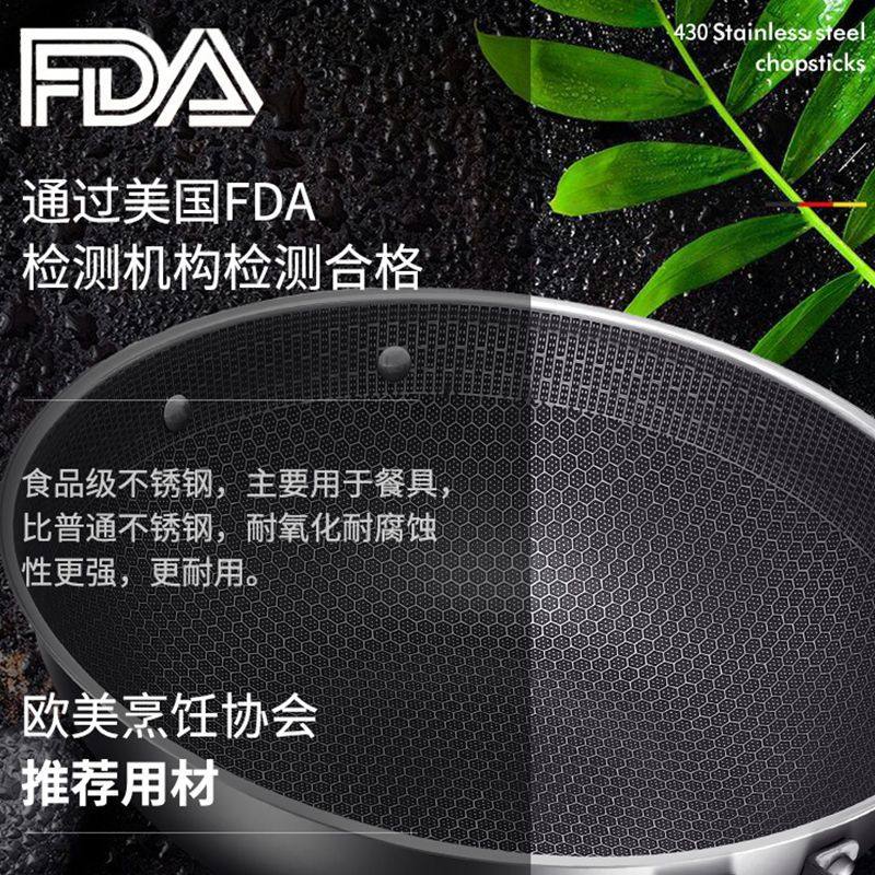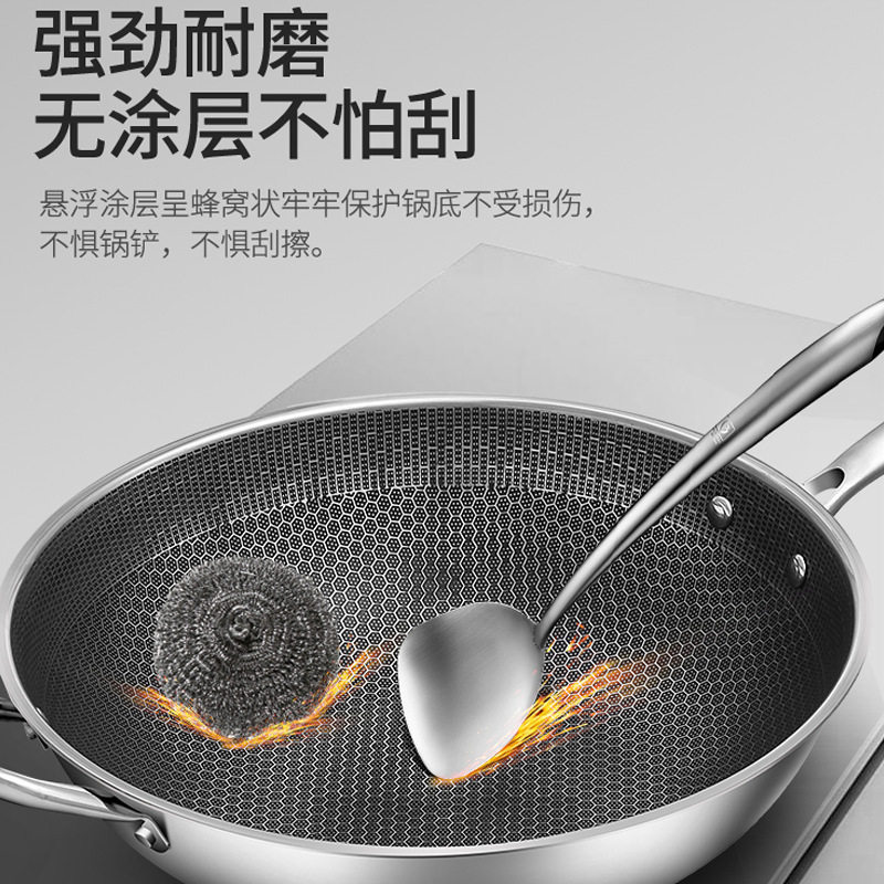德国不锈钢炒锅不粘锅无涂层少油烟炒菜锅具家用电磁炉燃气通用