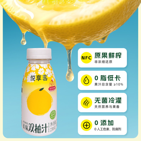 悦享客贡菊双柚汁鲜榨柚子汁小瓶果味饮料香柚胡柚果汁0脂肪饮品230ml*16瓶整箱发货淘金币抵扣卷后到手17.4叠加88消费卷到手15.29折0.9元1瓶单瓶还不到一块!需要送礼的可以拍2件礼盒装到手24瓶也便宜!速抢商家福利。