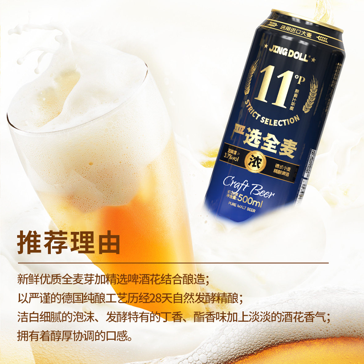 【领取闪购红包+金币到手更划算!!!】JINGDOLL11P德式小麦精酿,全麦无添加,28天慢酵工艺,口感醇厚细腻。整箱实惠装,适合聚会聚餐,畅饮更划算!