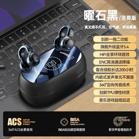 2025新款不入耳夹耳式耳机骨传导无线蓝牙耳机超长续航智能大数显