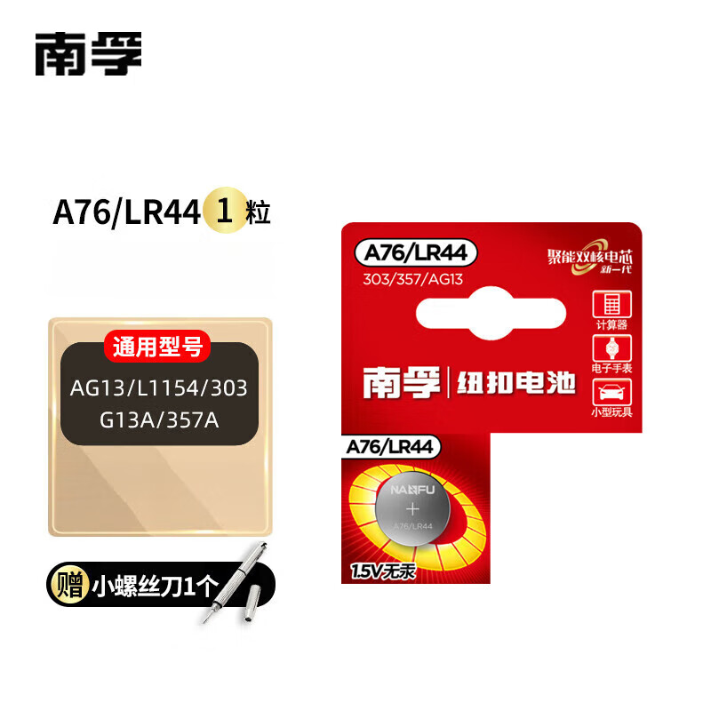 南孚【精选直发】电子A76/LR44纽扣电池AG13/L1154/357a/SR44小电子玩 A76/LR44【1粒】