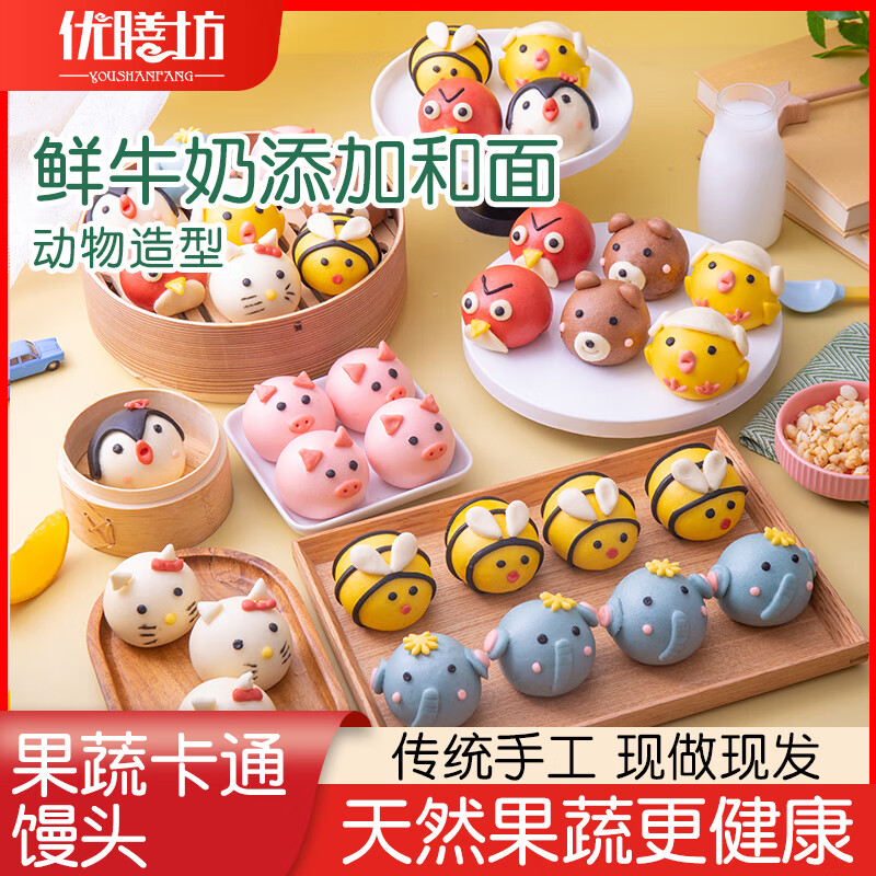 优膳坊卡通包子儿童馒头动物可爱手工奶黄包馒头糕点心学生早餐半成品 混装款:8个一包【每款各一个】 【现做现发】2包/16个/共640克