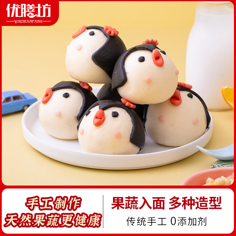 优膳坊卡通包子儿童馒头动物可爱手工奶黄包馒头糕点心学生早餐半成品 企鹅包(紫薯馅/单个约40克) 【新客尝鲜】一包装/8个