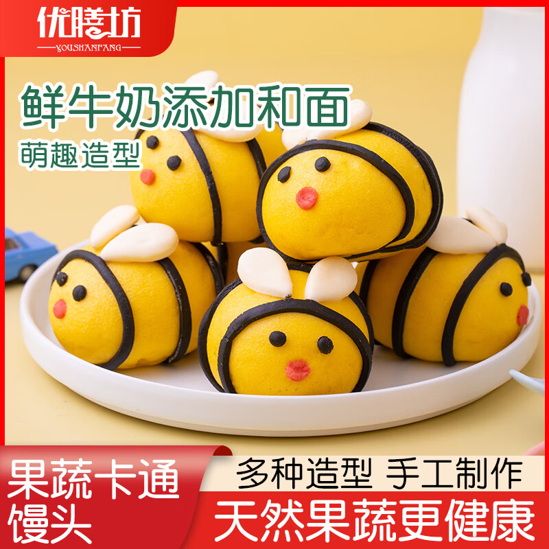 优膳坊儿童馒头卡通包子动物可爱手工宝宝营养奶黄包宝宝馒头早餐半成品 蜜蜂包(紫薯馅/单个约40克) 【新客尝鲜】一包装/8个