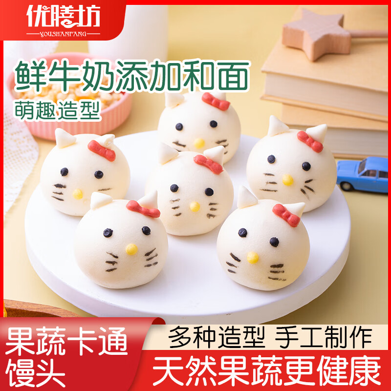 优膳坊儿童馒头卡通包子动物可爱手工宝宝营养奶黄包宝宝馒头早餐半成品 小猫包(奶黄馅/单个约40克) 【新客尝鲜】一包装/8个
