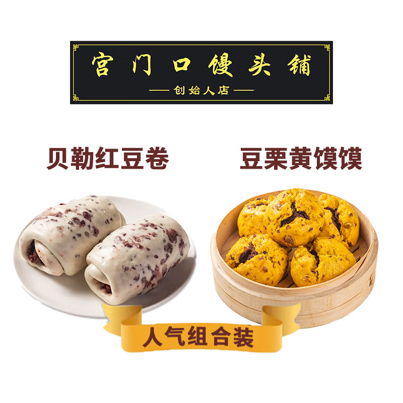 宫门口馒头铺创始人店人气组合香甜可口加热即食手工【红豆卷+黄馍馍】 豆栗黄馍馍+贝勒红豆卷(共8个) 各一包