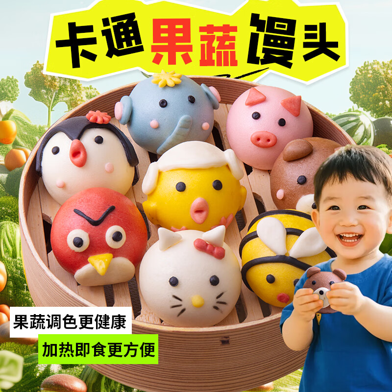 优膳坊儿童馒头卡通包子动物可爱手工宝宝营养奶黄包宝宝馒头早餐半成品 混装款:8个一包【每款各一个】 【现做现发】2包/16个/共640克