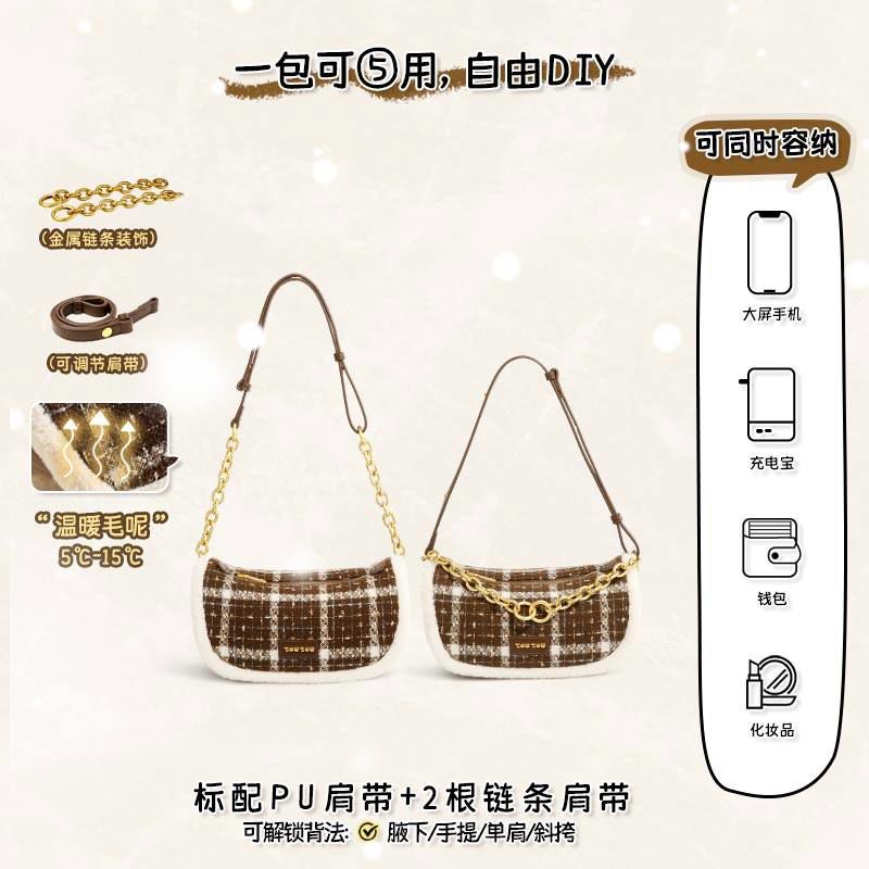 toutou设计毛呢包一包多用链条包包 现货焦糖拿铁一包5用