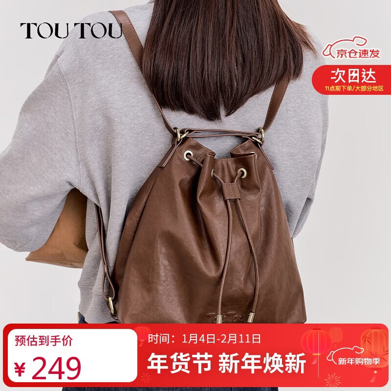 toutou新款水桶包轻便大容量托特一包多用腋下包双肩包生日新年马年礼物