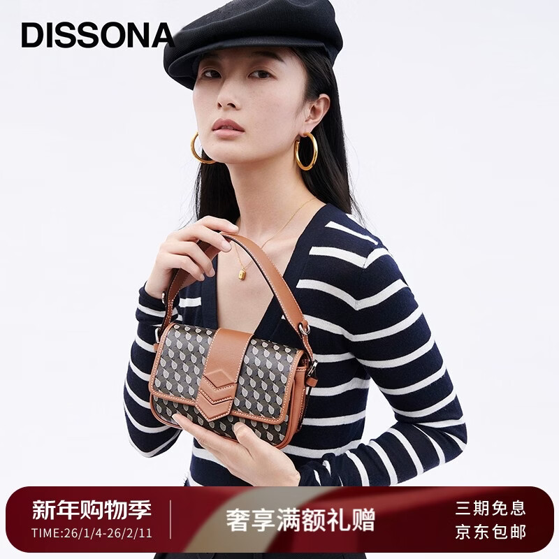 DISSONA迪桑娜女包幸运锦囊五合一包包 老花单肩包斜挎包【新年礼物】 深咖色