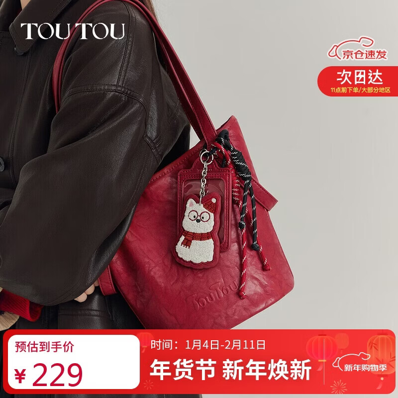 toutou新款女包植鞣水桶包上班通勤一包多用大容量子母托特新年马年礼物