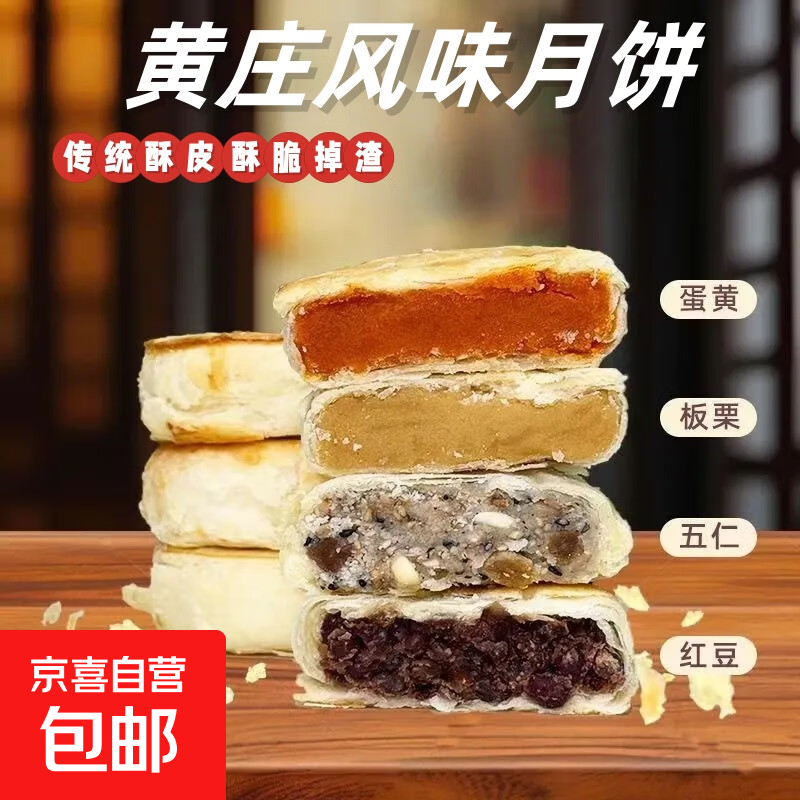 黄庄风味酥皮月饼48克/个蛋黄月饼五仁月饼红豆月饼板栗月饼 红豆48克x10个(一包10个)
