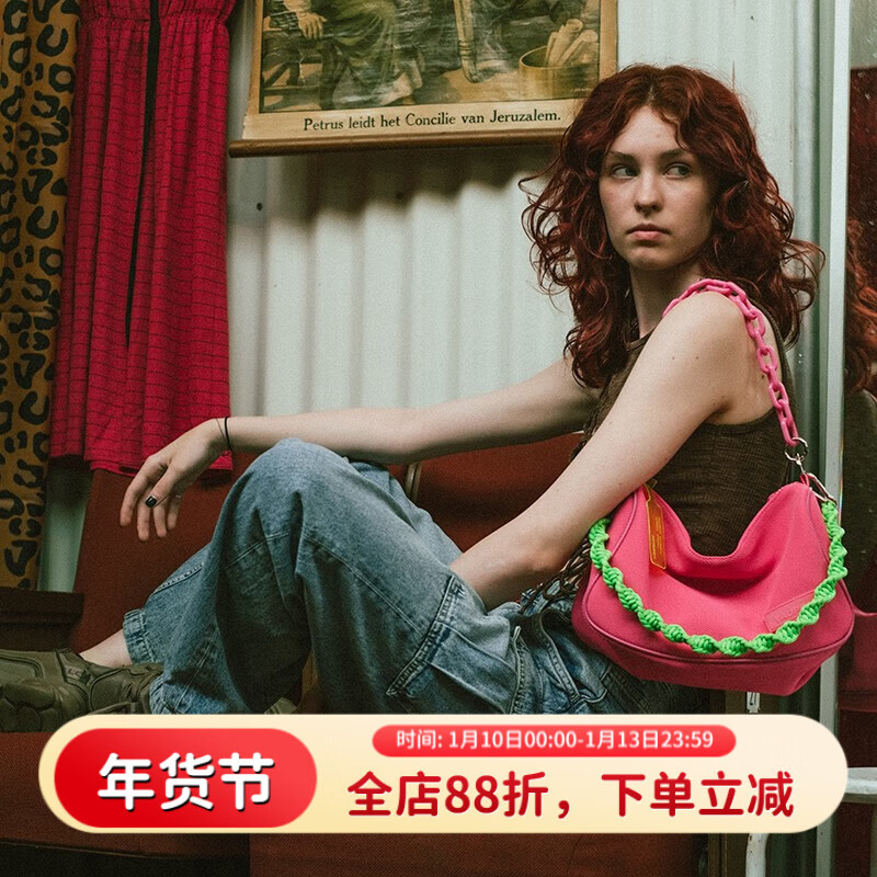 VAOPER喂牌链条单肩包斜挎包潮牌多巴胺手提包腋下包四季通用一包三背 玫红色