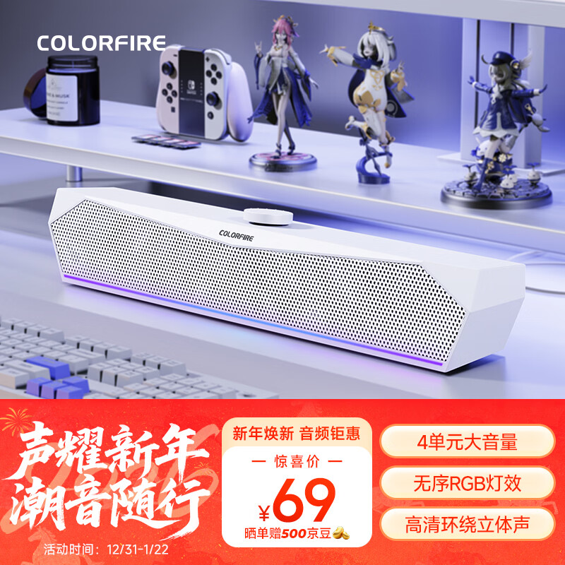 COLORFIRE七彩虹电脑音响音箱桌面电竞游戏无序RGB台式机笔记本低音炮有线喇叭3.5mm接口圣诞礼物CF100 白色