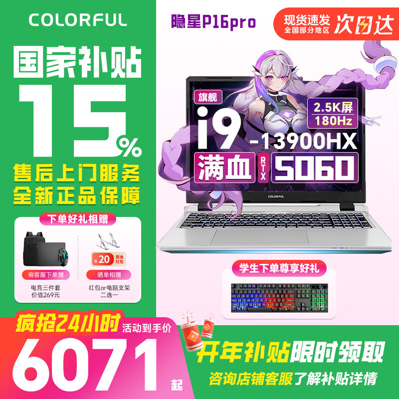 七彩虹(Colorful)隐星P16PRO 酷睿i9游戏笔记本电脑 RTX5060 2025新款大学生补贴 G16PRO电竞高性能全能本畅玩3A 隐星-I9-13900HX 16G 1T 5060 16英寸| 2.5K超高清