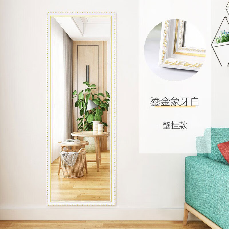 宏卿馨家用穿衣镜女生卧室试衣落地小户型墙上镜屋贴墙立式长条镜子 30*120鎏金象牙白【挂墙款】