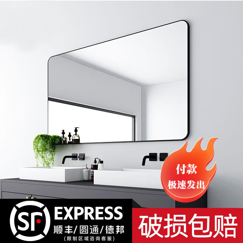 德旭卫生间镜子浴室壁挂镜厕所洗漱台梳妆镜家用挂墙上镜免打孔自粘镜 【高清防爆】30*40经典黑-免打孔