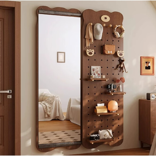 实木洞洞板隐藏穿衣镜一体门后衣架置物架家用造型墙上镜子全身镜 默认发左推拉 右推拉备注