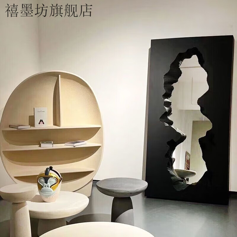 禧墨坊北欧网红立式破碎镜子玻璃钢异形穿衣镜设计师不规则全身镜墙上镜 75*180(黑色) 其他