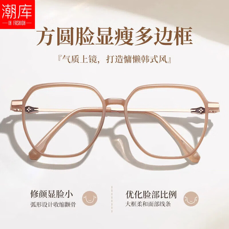 潮库韩式修颜多边形素颜显白上镜近视镜框防蓝光眼镜TR86002 粉杏色 配1.67防蓝光0-1000度