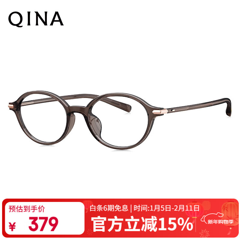 亓那(QINA)近视眼镜赵露思同款高智小圆框眼镜框修颜上镜光学镜QJ5199B10