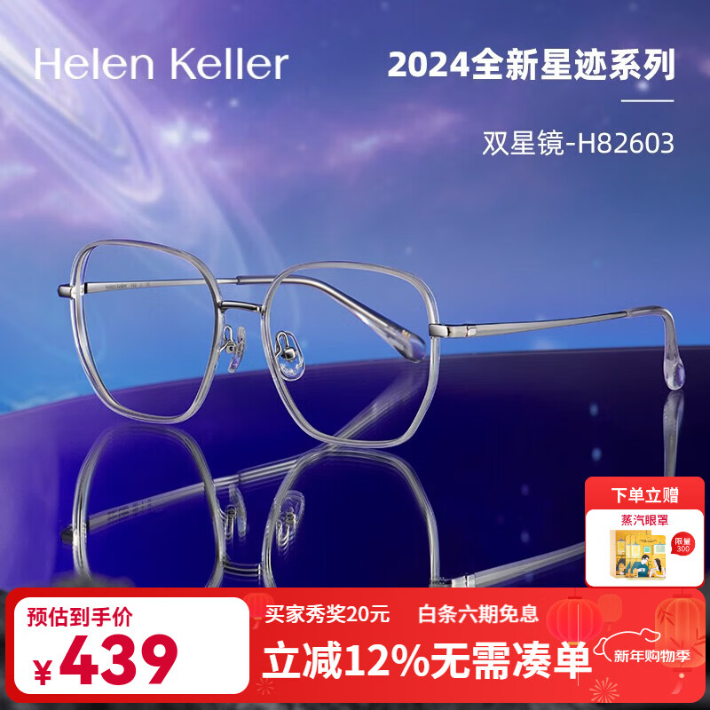 海伦凯勒(HELEN KELLER)全新星迹系列眼镜修颜方框时尚上镜拍照好看近视眼镜男女H82603 C9-亮透明+亮银