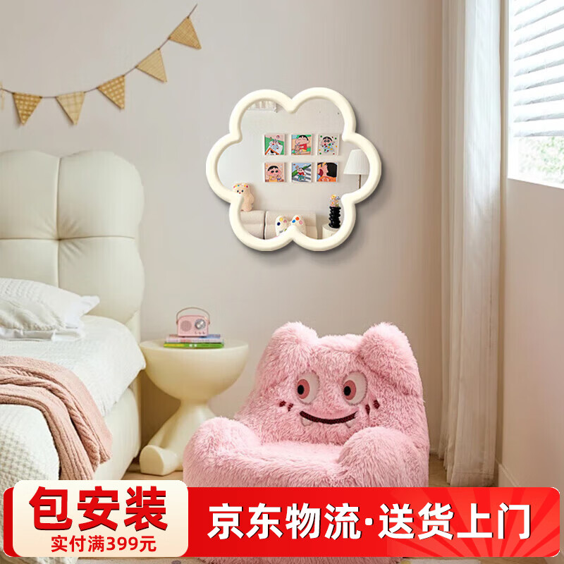 艺环宇简约镜子装饰画创意卧室化妆镜挂画梳妆台墙上镜子画奶油风装饰镜 白色镜子画