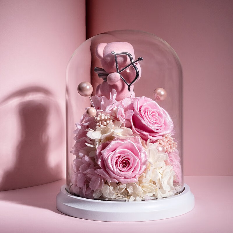 JoyFlower永生花玫瑰丘比特熊礼盒情人节生日礼物结婚纪念日送女生朋友实用