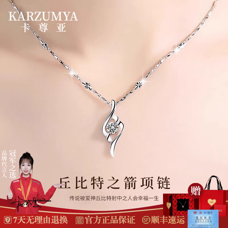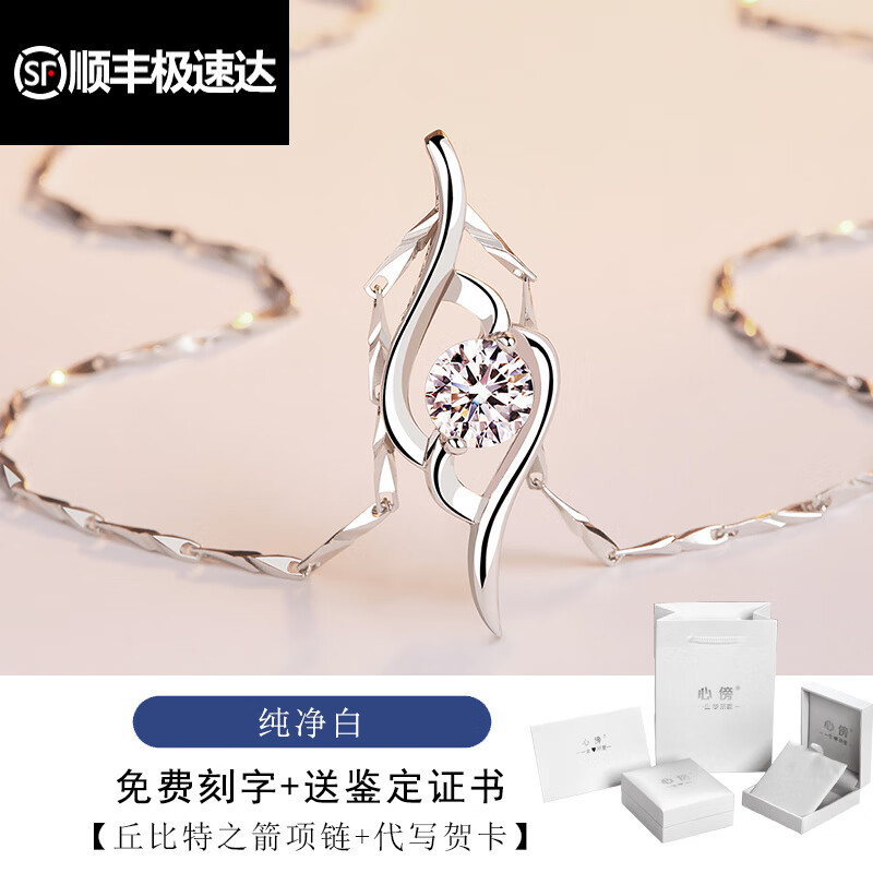 CFKLTD999银项链锁骨链女送女友生日礼物四叶草简约气质吊坠百搭 丘比特之箭白钻+水波链+证书